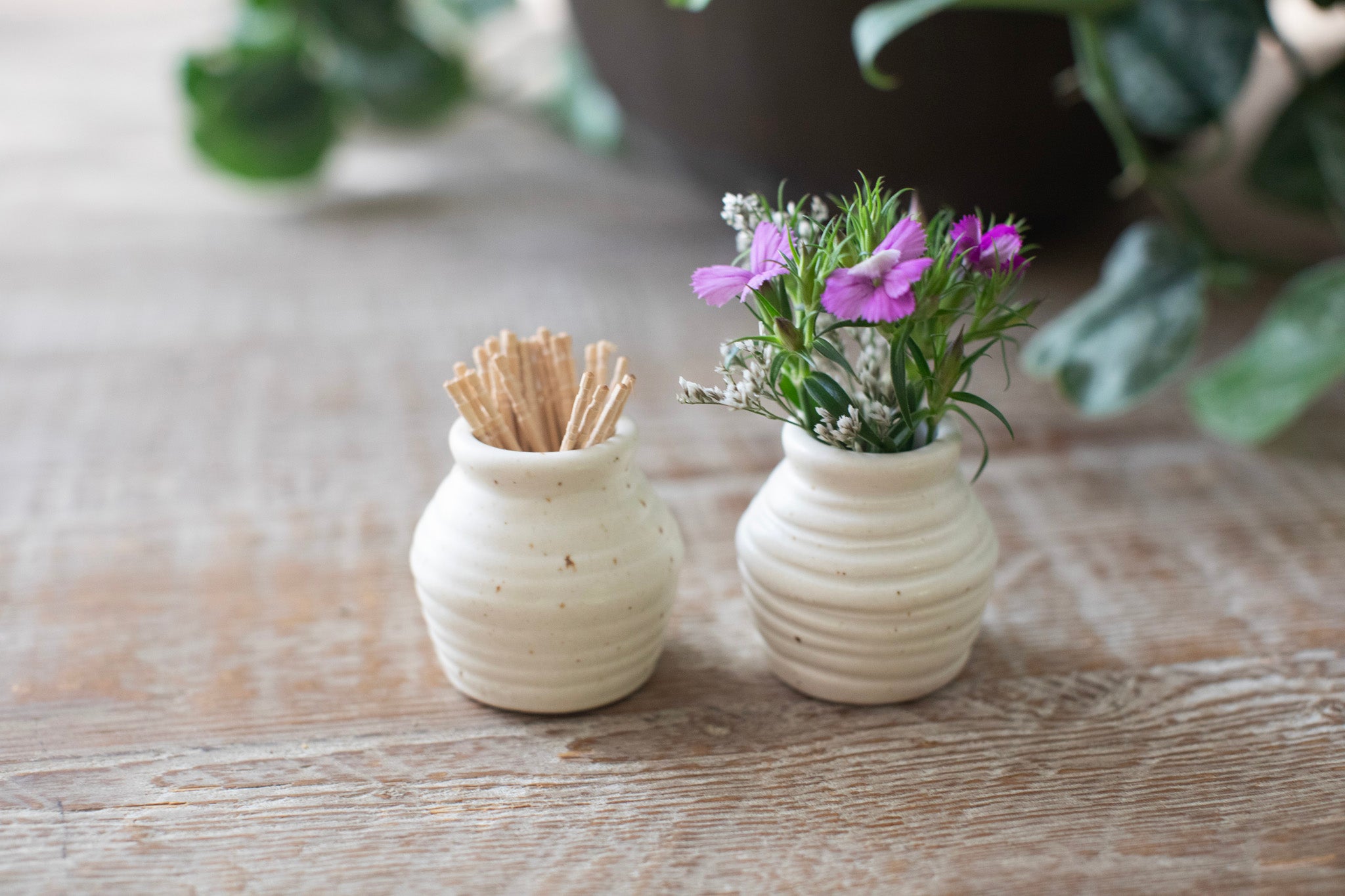 Ribbed Ceramic Speckled Tiny Pot
