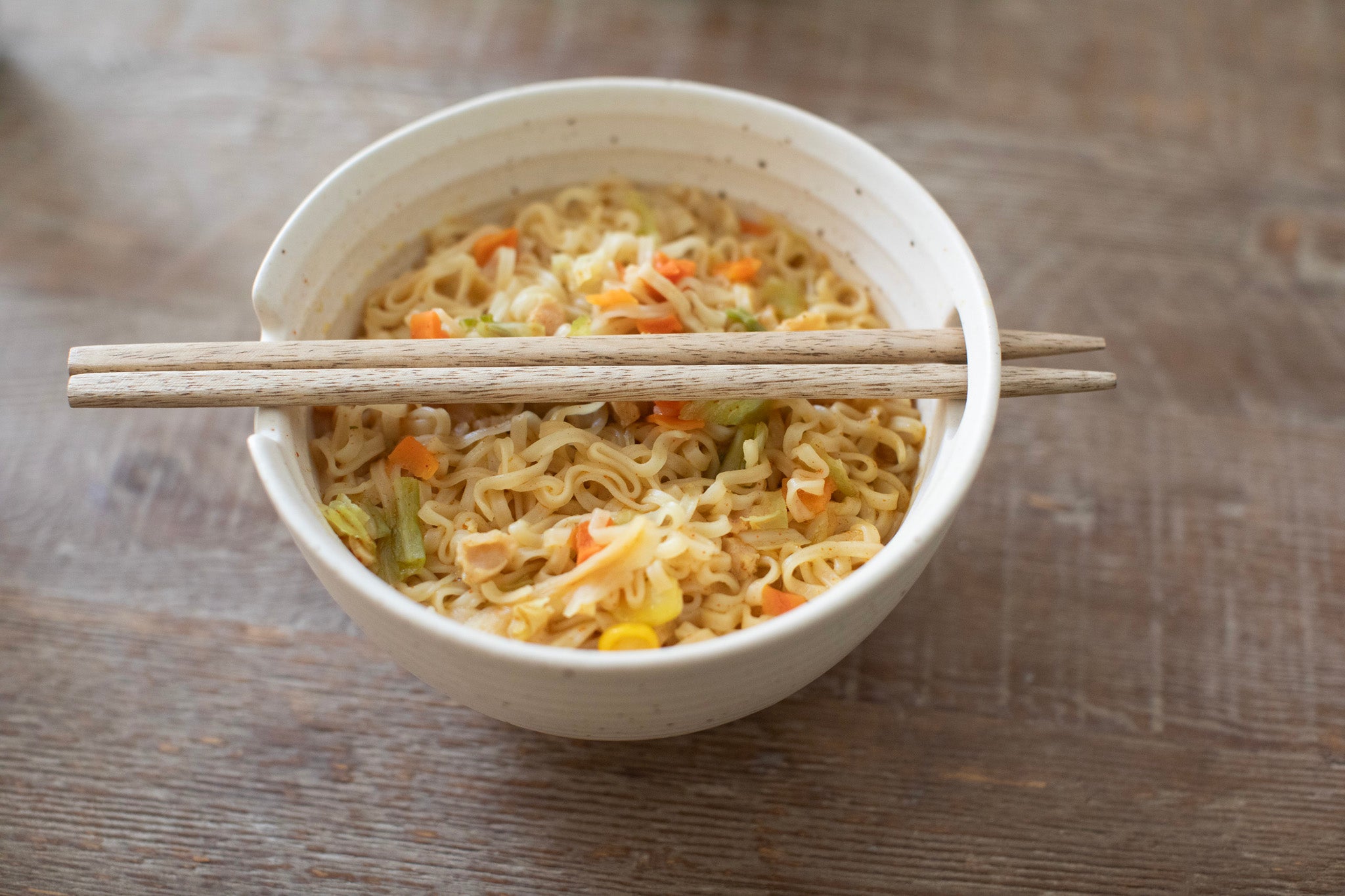 Ribbed Ceramic Speckled Ramen Bowl With Chop Sticks