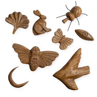Hand Carved Wooden Symbols and Creatures - Set of 8
